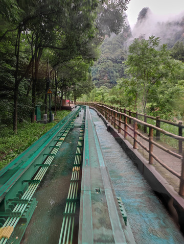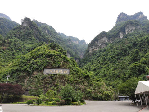 进入景区乘坐环保车到十里画廊站,不管是山上还是山下停车场,都有工作人员指引疏导,无论去天子山索道下站、十里画廊、水绕四门,百龙天梯下站,还是三岔口站,只要听清工作人员报的站名及环保车编号,然后按照编号乘车就好。水绕四门和百龙天梯下站是乘同一趟车,而且两站间距离并不远。环保车路线是标志门门票站—十里画廊站—水绕四门站(又叫金鞭溪站,此站可以转车到梓木岗门票站)—百龙天梯下站(搭乘百龙天梯上山,前往森林公园袁家界)。大概15分钟到达十里画廊站,乘坐小火车进入,步行出来,十里画廊号称10里,实际4-5里地,全部为栈道,都是平路不费力,步行往返估计约1.5小时,天气好没必要乘小火车。继续乘坐环保车到水绕四门站,准备徒步金鞭溪,在十里画廊下的是小雨,进入金鞭溪时雨是越下越大,而且有点漂泊大雨的意思,只能原路返回到水绕四门,在德克基休息等雨停,等了半天雨没有停的意思,干脆原路返回到森林公园标志门,雨下的太大,直接打车回酒店。