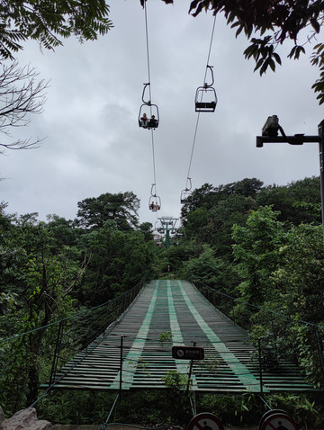 悬索桥建在两山之间,非常结实,蹦蹦跳跳也不会晃荡。