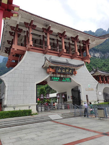 到达天门洞广场,跟着人流走到达天门洞快线索道上站,乘坐快线索道下山(直接刷身份证乘坐,一车可以坐26人,时间很短),途中会路过天门狐仙演出地,出山门,有摆渡车送回天门山索道下站。至此天门山的行程结束,在酒店旁边的三下锅晚饭,回酒店休息。