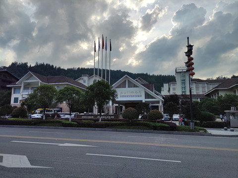 过了高铁站班车速度加快,大概1个小时左右到达张家界京武铂尔曼酒店,首先酒店酒店交通方便,酒店门口有公交车站,张家界中心汽车站到武陵源汽车站的班车途径酒店停靠,回程不需要到武陵源汽车站,在酒店门口拦挂武陵源---火车站或者汽车站的中巴车就行,到南门( 张家界国家森林公园门票站),直接在酒店门口拦挂森林公园---武陵源的中巴车就行,到东门(张家界森林公园索溪峪标志门)有点距离,步行10分钟左右,也可以打车,一口价10元,去程酒店大堂的礼宾员可以帮忙叫车,回程标志门门口就有,出租车很多,不需要担心没有车。其次位置非常好,隔壁就是魅力湘西演出现场,看演出方便,斜对面有美食一条街,还有超市水果店等购物吃饭方便。房间内部是地毯,有卫生死角,这点值得理解,房间卫生打扫做得比较到位,总体来说房间干净整洁,酒店是17年的(携程标注),房间设备设施有点旧,的确有年头,酒店人员服务态度很好,有问必答。早餐有米线,炒饭,炒粉,烤肉,烤肠及6,7样热菜,冷拼区有水果,沙拉,牛奶等总体说菜品丰富味道不错。