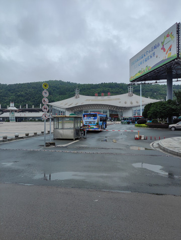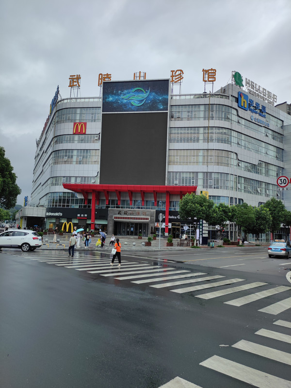 自然醒,酒店早餐后退房,在酒店斜对面的武陵山珍馆前面的公交车站等候到武陵源汽车站的班车,向我们这样在武陵山珍馆站乘坐旅游班车,淡季肯定有座位,旺季不好说,我不到汽车站坐车,主要是张家界希尔顿欢朋酒店就在武陵山珍馆站的斜对面,过马路就是,酒店离张家界中心汽车站步行需要5分钟的距离,而且当时在下雨,我是真不想走到汽车站了。