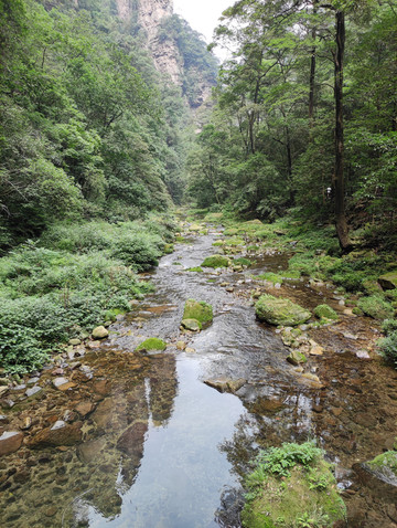 坐索道下山。乘坐环保车到达大氧吧广场进入金鞭溪,金鞭溪的两端是水绕四门和大氧吧广场,全长7.5公里,全部为平路只能徒步。景点有神鹰护鞭,金鞭岩,紫草潭,水绕四门,千里相会等,金鞭溪里面空气清新,湿度很高,不赶时间慢慢走,多花点时间在溪边玩玩水也不错。本来想走半程,后来小伙建议直接走全程,这样不需要走回头路,而且不需要到门票站等班车,我们大概2小时左右到达水绕四门,乘坐环保车到标志门,回酒店。