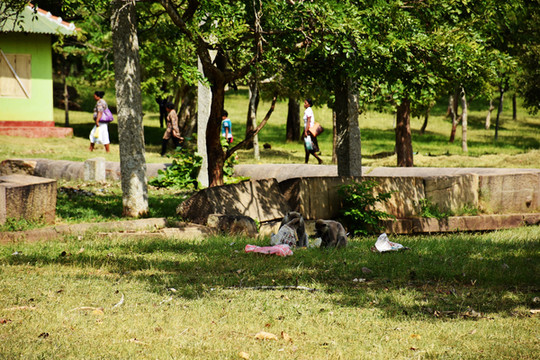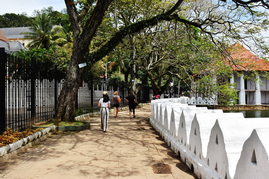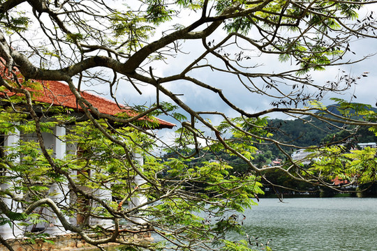 康提市中心区域不算大,基本靠走也能逛完,找到GH放下包,就直奔康提湖。康提湖至于康提,就像西湖之于杭州,湖就在康提市中心,它是由一片稻田挖成的人工湖,湖上景色秀美,湖边长满了热带花草树木,在郁郁葱葱的树上还能见到野生猴子,也算是兰卡的一大特色。在湖上有一条平缓的环湖大道,无论是游客还是当地人,都喜欢绕着康提湖走一走。佛牙寺就在康提湖边上,康提湖映衬了佛牙寺,而佛牙寺点缀了康提湖,虽然对于我们来说这样的风景谈不上多么美丽,但两者的交相辉映,完美和谐,还是构筑了康提城一道美丽的风景线。