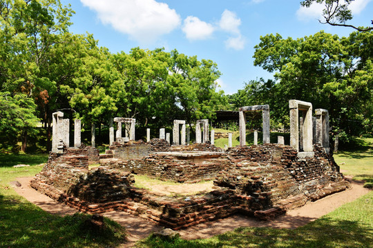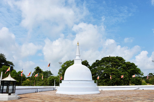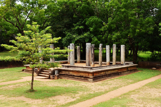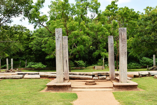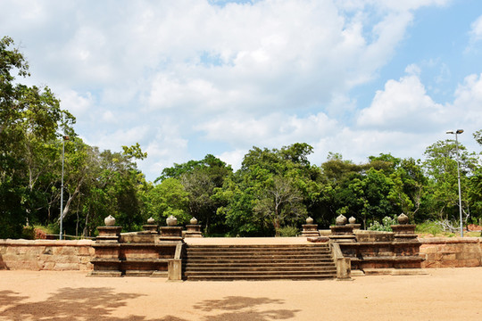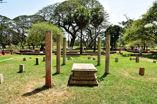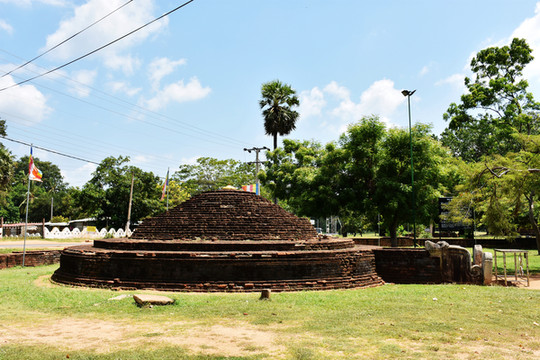 白色的兰卡拉玛舍利塔,僧伽罗语的意思就是索玛修道院,这座舍利塔是修道院的重要建筑。当年,somadevi被南印度达罗毗荼人劫持后返回斯里兰卡,国王瓦拉盖跋忽为了庆祝而修建了这座寺庙。佛舍原是圆顶形建筑,有88根石柱分三圈环绕,现在重新维修后只能看见十几根石柱。这座舍利塔容易和都波罗摩塔搞混,不过规模要小很多,有时间也可以进去转转塔。