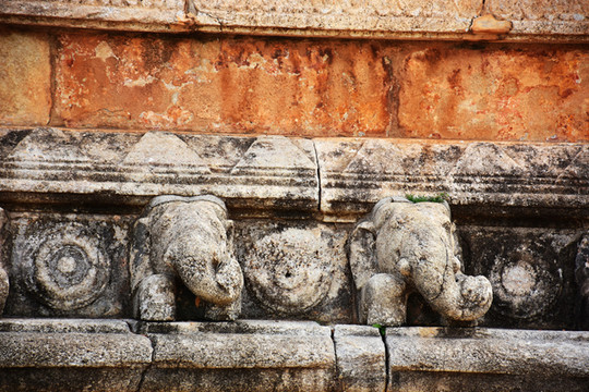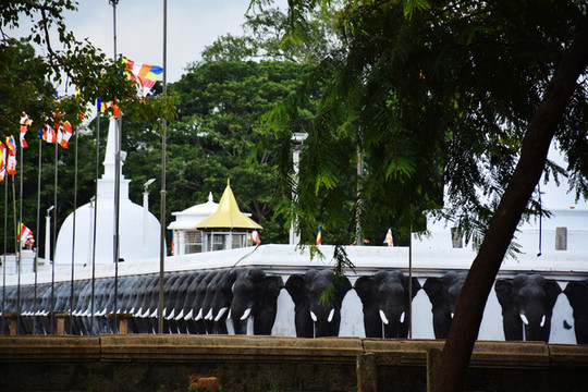 围墙由排列整齐的大象组成,有着支撑佛塔的象征意义。