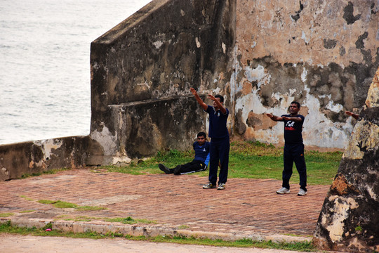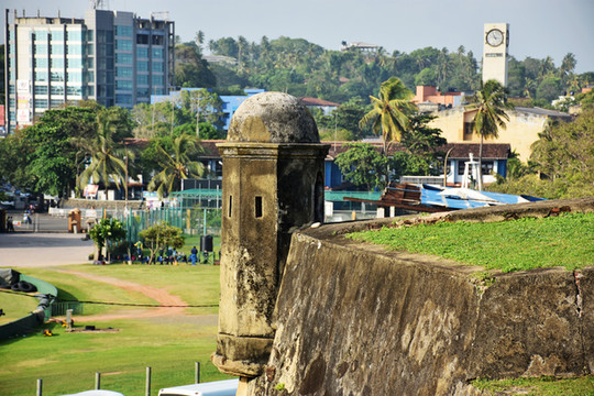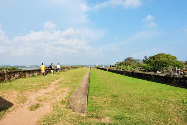 加勒古城三面朝印度洋,只有新城门这边面对陆地,最初是由葡萄牙人在四周建立壕沟,后来荷兰人有加长了壕沟的长度,并把城墙分成星星碉堡、月亮碉堡、太阳碉堡,临近傍晚时分,非常适合在这里吹吹印度洋的海风,看看日落。