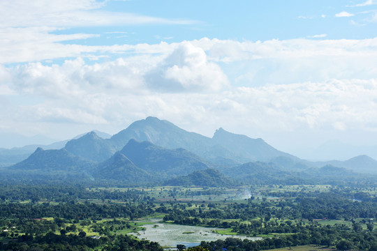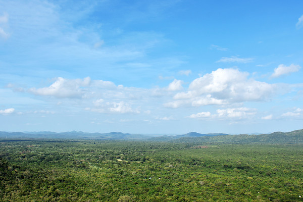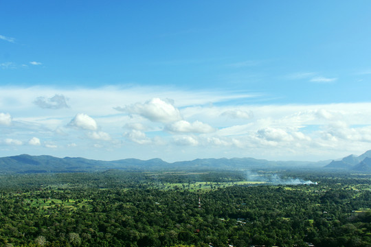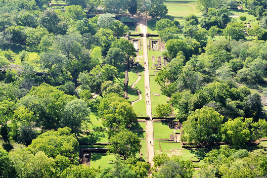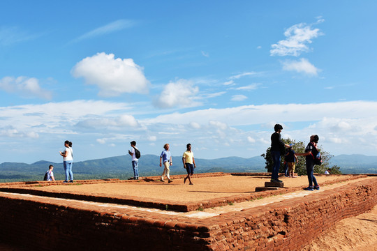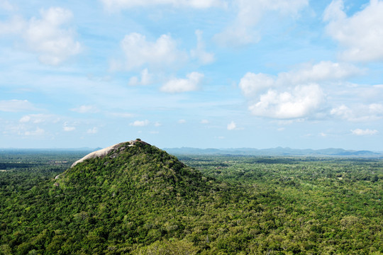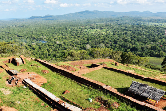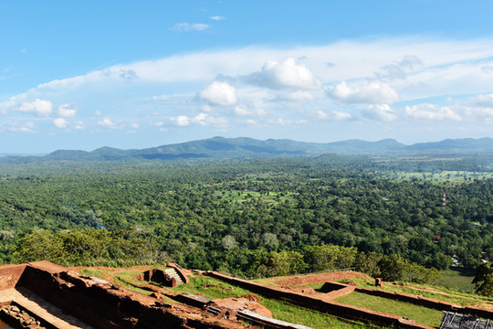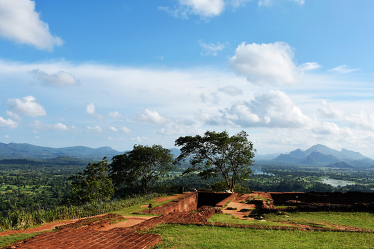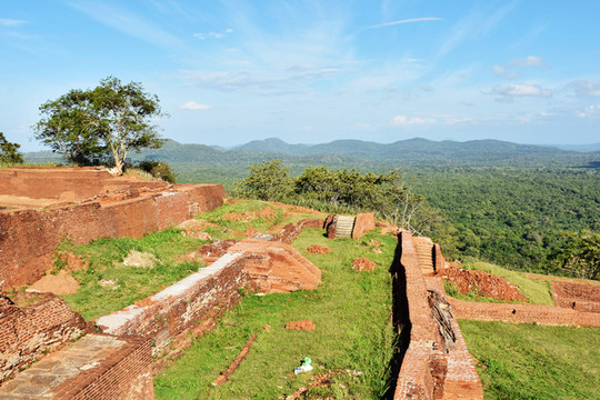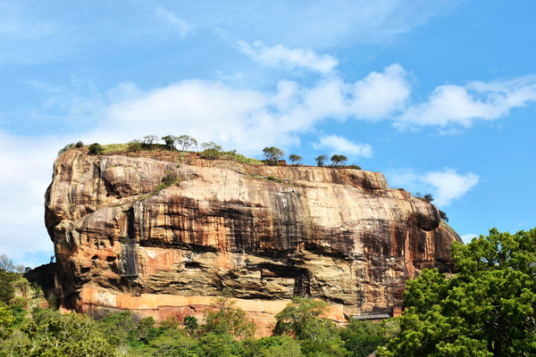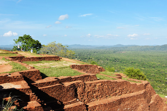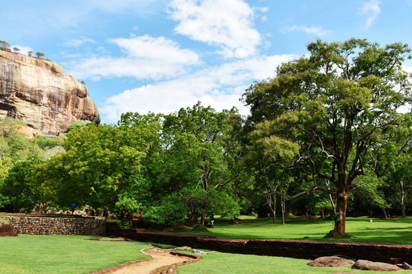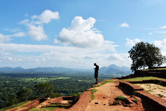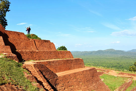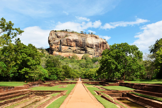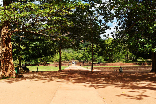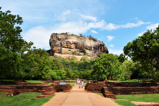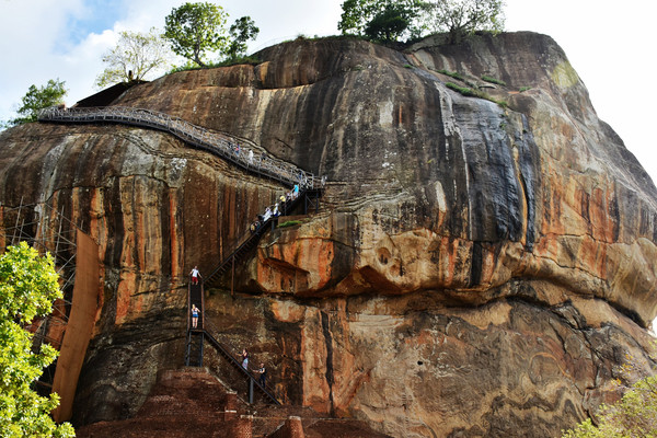 狮子岩之于斯里兰卡,有点到中国就得去长城瞧瞧的味道,不过俺在去之前对于去不去这里倒是犹豫了很久,一来是路线,到了丹布勒还得往回拐一下,因为是公共交通有点嫌麻烦,二是看评论对于此地褒贬不一,虽然著名倒也不是非得一去,不过最后综合了俺媳妇的意见,还是去一趟,她都不嫌麻烦,俺也无所谓了。从阿努拉德普勒到丹布勒也有空调小巴,也就贵了几块钱,舒适度那就提升了不止一个档次,到丹布勒下车,果然也在路边,收起一脸茫然的表情,先去找住的地方再说。狮子岩位于锡吉里耶古城,在斯里兰卡,问路去狮子岩直接称锡吉里耶就行。对于狮子岩,很多人应该都听说过,这是一座构筑在橘红色巨岩上的空中宫殿,前后花了18年建造,最初巨岩被修建的像一头巨狮,不过随着岁月的洗礼风化,如今只剩下狮身,最明显的证明的就是那对依然栩栩如生的狮爪。这块巨岩仿若澳洲埃尔斯岩一般,高约200米,依山傍水。想要一睹宫殿的真容,就要先爬上漫长的阶梯,它就是斯里兰卡文化金三角的顶点,也是受联合国教科文组织保护的世界文化遗产,和吴哥窟、婆罗浮屠、阿旃陀石窟齐名。登上岩顶,景色豁然开朗,无边无际的丛林像绿色的地毯,慢慢的向远处铺开,湛蓝的天空仿佛伸手就能触摸到,极目远眺,整个古城一览无余。如今宫殿虽已不在,只剩下底座和几块砖石,但那雄狮的样貌和气势,依然壮观。