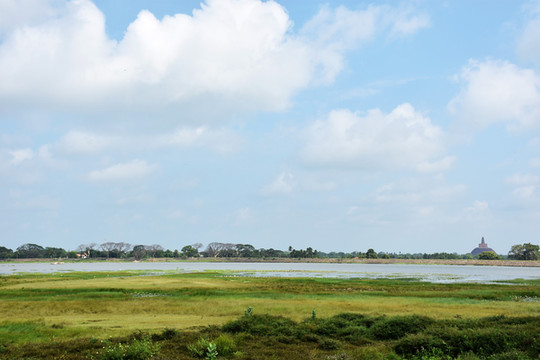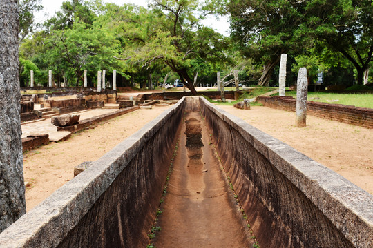 阿努拉德普勒在公元前3世纪到10世纪一直是僧伽罗王朝的都城,历史上曾繁盛一时。两多年前阿育王之子渡海至此,开创了斯里兰卡佛教的历史,阿努拉德普勒由此成为斯里兰卡最早的佛教圣地,即使到今日,这里依然是斯里兰卡乃至南亚地区最大的佛教中心。古城核心部分方圆三十多公里分布着许多寺庙遗址和蓄水池,当然,巨大的佛塔最能引人入胜,泥固的大圆形实体,矗立在一望无垠的稻田里,直冲几十米的云霄,分外的显眼。除了大佛塔,散落在各处的遗址也是不能错过,虽然这些遗迹已经破败不堪,有的只剩下底座和几根石柱,但它们依然是古城不可缺少的一部分,千年的岁月,它们一起参与和见证了斯里兰卡历史的变迁。向古城外驶去,路过一处小小的遗址,据说这里是佛牙舍利在阿努拉德普勒的供奉处。