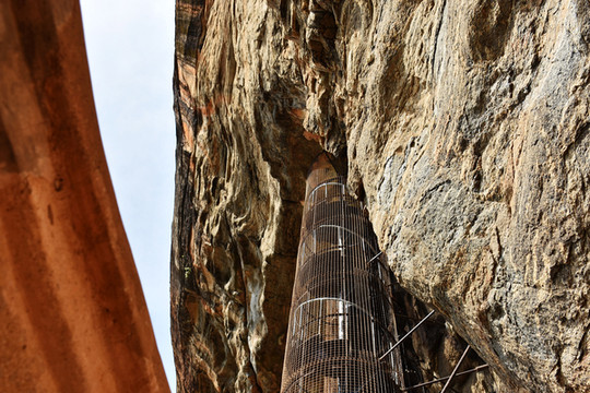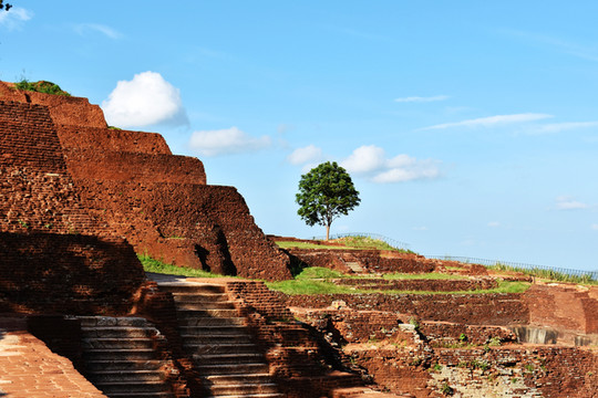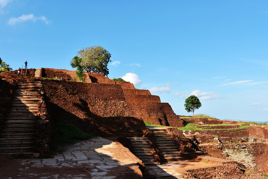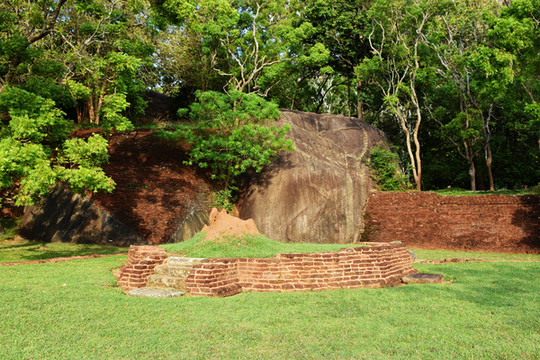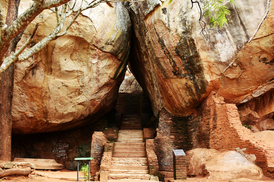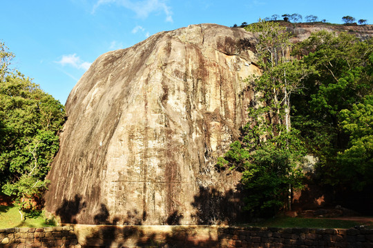 整个狮子岩的范围挺大,有护城河、花园广场、巨大的岩石、宫殿遗址等组成,这座世界奇迹是由摩利耶王朝的国王卡西雅伯建造。卡西雅伯弑父登基,为了逃避为父报仇的弟弟莫加兰复仇,在18年的时间里,沿山势建造了这座军事防护意义浓厚的碉堡宫殿,当然,恶有恶报,最后弟弟还是夺回了王位,把都城迁回了故地,而把这里改成了僧院,14世纪后,僧院逐渐被废弃,狮子岩便被丛林埋没,直到1898年被英国考古学家贝尔发现,才得以再次向世人展示它的宏伟。