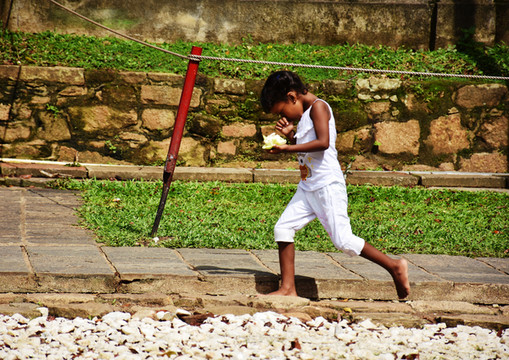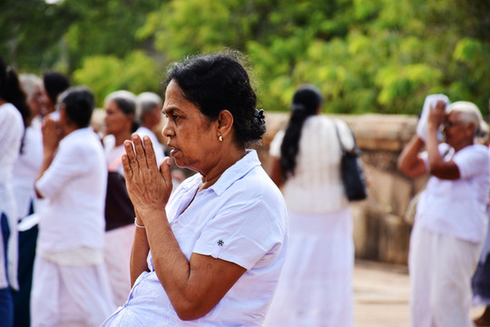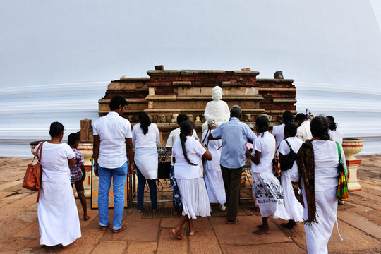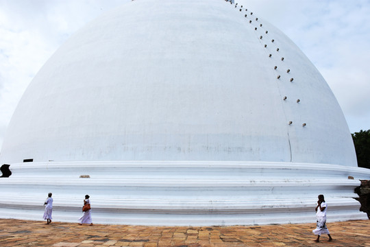 兰卡人喜欢穿白色衣裤,与圣洁的白色佛塔非常搭配