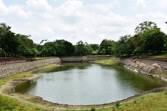 大象池塘,长150多米,宽50多米,深10米,有六个现代标准游泳池这么大,是斯里兰卡最大的人工蓄水池,池塘的底部有水闸和通向其它池塘的暗渠。这里基本没什么人,周围环境自然,不时有鸟儿飞过,在茵茵绿树掩护下,烈日的暴晒缓解了不少,偶有阵阵凉风,坐在水池边什么也不想,那一刻时间仿佛是静止了。
