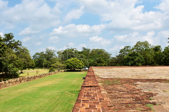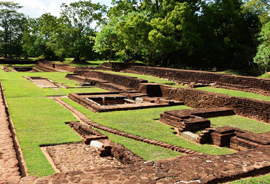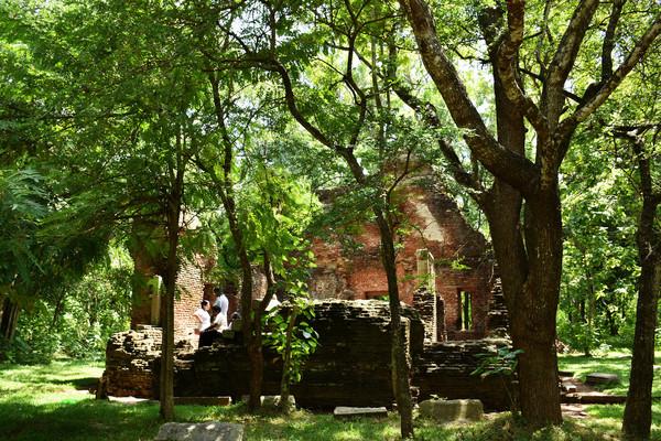 在佛教历史上,无畏山舍利塔不仅仅代表一座寺院,更是一种独特的历史记载、传统和生活哲学的教派。这里是当时大乘佛教在斯里兰卡的总寺院,到公元三世纪时,马哈诗那国王的扶持政策让无畏山达到了巅峰,它拥有了一座寺庙该具备的所有元素,佛殿、佛塔、菩提树寺、藏书阁、诵经阁、居住区、食堂、浴池,甚至还有发达的道路交通和引水系统,到十二世纪,以这里为中心的大乘佛教和以大寺为中心的上座部佛教发生势力冲突,当时的国王抑制了大乘佛教,之后大乘佛教便开始在斯里兰卡销声匿迹。历经千年风雨,如今这些建筑基本只剩下底座或者完全消失,与四周旺盛的野草古树盘根错节的交融在一起。
