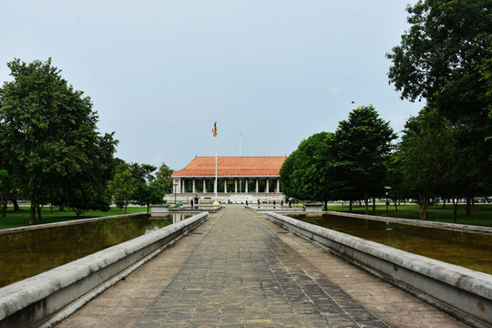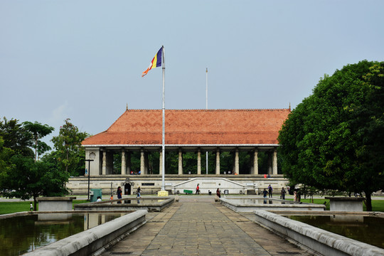 走出科大没多久,就是独立广场,就在科大的东侧,它是为纪念斯里兰卡1948年脱离英国殖民统治而兴建的纪念厅,兰卡标志性的文化广场。纪念厅是一座开放式的建筑,高高的基座上,那红色的屋顶特别显眼。周恩来总理曾在1957年兰卡独立九周年之际,在此冒雨发表友好讲话。