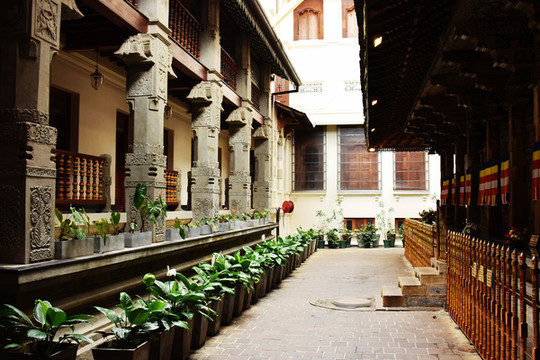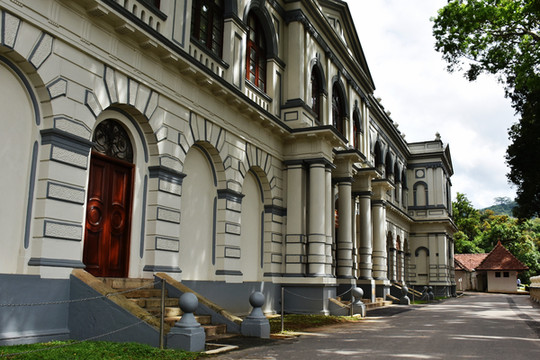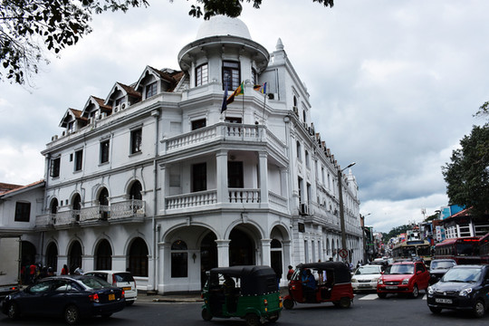 皇后酒店就在康提湖对面,有160多年历史,最下面是骑楼,有餐厅和各种商店,酒店的电梯和大堂充满了英伦风情,这酒店就是为英女王下榻康提而建。
