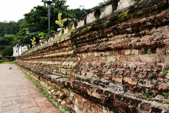 斑驳的城徽和攀援的植物给老城门增添了许多历史的沧桑感,牌匾上刻着荷兰语,意为“荷兰东印度公司”,城门设计的很小,属于防御工事标准的设计风格。