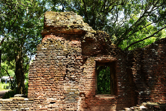 树林中也有零散的遗址,虽然只剩残垣断壁,但多了一些岁月的神秘感。