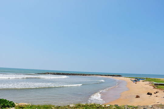 走到沙滩的一头可以绕出来到马路上,想去看高跷渔夫可以坐车继续往前,也可以在公交站坐车回加勒。