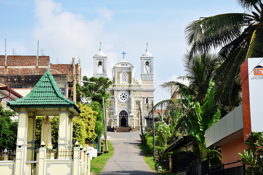 一路走到圣塞巴斯蒂安教堂,据说这是尼甘布最漂亮的教堂,由当时的科伦坡大主教彼得马凯主持奠基仪式,虽不如尼甘布的圣玛丽教堂出名,但这座建筑精美程度还是略高一点,教堂的保存依旧完好,周围有很大的一片广场,基本没看见游客,偶有几个信徒和当地人坐着聊天,很适合悠闲的散步或者静静地坐着冥想。