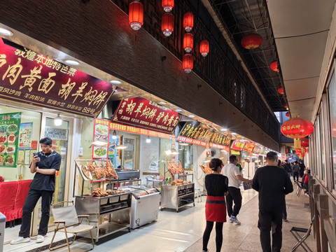 我们在酒店办好入住手续后,来到敦煌的沙洲夜市吃晚饭。