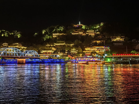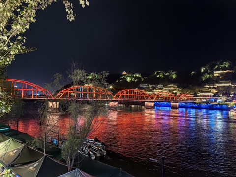 吃过晚饭,我们又来到黄河边观看中山桥的夜景。