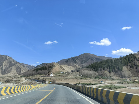 伴随着蓝天白云在祁连山中继续行驶,半小时后到达天堂寺。