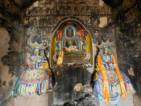 千佛洞1-4号特窟的北魏佛像和壁画很精美,但毁坏严重。进入特窟有工作人员跟随,无法拍照。参观完特窟,开车继续前行到达北寺。