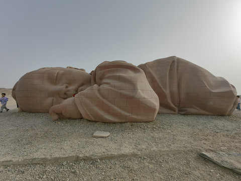 雕塑《大地之子》位于甘肃敦煌市瓜州县红山坡戈壁滩上,雕塑主体为茫茫戈壁之上趴伏在地、恬然入睡的长15米,高4.3米,宽9米的巨大婴儿。酣睡在一望无际的戈壁荒漠中的"婴儿",就像一个孩子依偎在母亲的怀里,仔细地倾听母亲的声音。雕塑的周边都是荒漠,"婴儿"深情安详地伏俯在大地上,以天为被,以地为床,给沙漠带来了活力和生机,有一种莫名的视觉冲击感。把《大地之子》雕塑放在这里,就是用来警示人们要爱护好赖以生存的环境,人类应该与自然和谐共处。