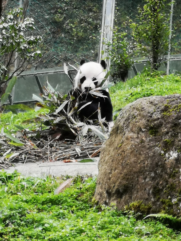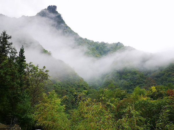 7:49h出发。官门山是个科普基地,沿小溪分段介绍和展览神农架的动植物,主要看点叠层石、龙头寨、地下暗河、珍稀植物和野生动物,官门山距木鱼镇仅一公里,很快便到达。但是不让进入景区,只能在路边看到的熊猫馆游览。这里的外部环境依然很美,早上的晨雾在崇山峻岭中缭绕变换,虽说没有阳光,青翠欲滴的清新也让人目不暇接。从停车场过一座小桥,听着哗啦啦的流水声看大熊猫在围栏里吃竹叶的憨态,走进玻璃大屋都是商业物品,但是有一处高台却可以看室内外的熊猫,他们比起其他动物园里的熊猫可爱自在多了,毕竟是在他们的生活环境里,大把的捋吃箭竹叶子,吃饱的熊猫就走回房间。出来路过商店还是忍不住给外孙买一个母子熊猫公仔。有一条路是去看植物和国际交流中心以及动物救护站的,下来的人说没什么好看就不想去了,也许是审美疲劳,这里唯一可观的地下暗河因要走下去很多台阶就没有去看。附近景点与金猴溪差不多。8:50h离开。