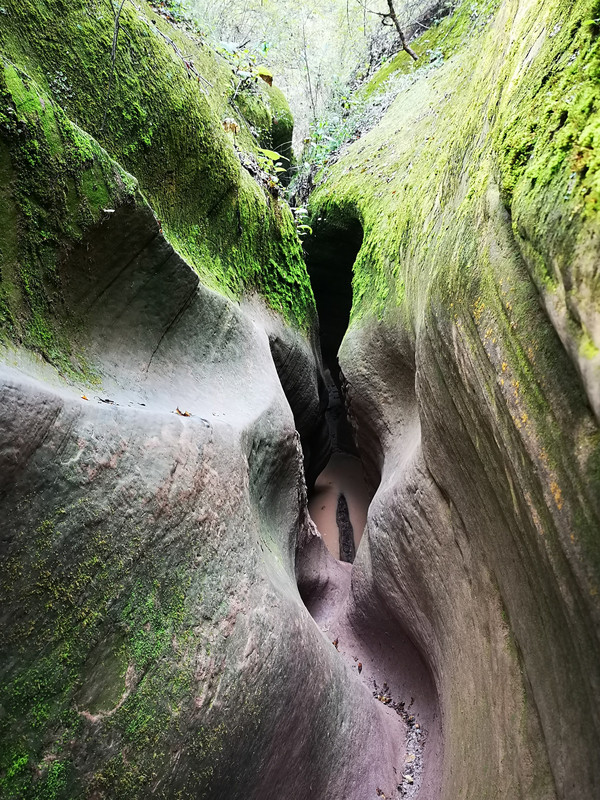 晚上下一夜的小雨,这对游览大峡谷不好,怕谷底有水。民宿提供的早餐,馒头小米粥鸡蛋,每人十元钱,老妇人特意给我们两个小玉米,说是额外添加的,哈哈印象不错。进入景区还是需要乘他们的通行车。车票每人40元。景区目前开放四个峡谷景点,花豹岔(长200米)、龙巴沟(长2500米)、牡丹沟(长200米)及其对面的一线天(200米)、桦树沟(800米),其中桦树沟是游客反馈认为最漂亮的。很不巧的是桦树沟因维修关闭,另外去了龙巴沟和牡丹沟。虽然我们有雨鞋。但是都还用不着,一上午没有下雨,领略了其神奇的美。11点多就从峡谷出来,12点回到民宿,房间已经被收拾过,并且把我们留在房间的毛巾和雨伞也收走,因为看不到我们的东西也就被遗漏。匆匆吃过午饭便离开风妹子民宿。同住在这里的一个广东人说有一个梦幻谷非常漂亮,对外不开放,因为进去太艰险,不方便行走。好奇心让我们决定前往体验。也是他就在返回的下寺湾镇不远处。我们找了当地人带路,费用200元。真没想到进沟的路太烂了,泥浆路面看不到其中的坑坑洼洼,随时在打滑刮底中爬行,真后悔来这个地方,但是没有退路只能前行,好在有个引路人在前面开路。进沟需要穿路边人提供的雨靴,每人10元租金,还真的感谢这双鞋。无怪这里不开放,进出沟要走很多路爬坡下沟累的我气喘吁吁。但是山沟里的空气很好,很多古树,还是原始环境。但是在那个并不长的沟里,的确够费劲,很多地方需要侧身仰爬般的才能挤过去,脚底没有容得下一只脚的平面,有的地方是前面的游人放一根棍子垫平脚才可以踩着过去,有的地方是很深的水,要趟过去,但是沟里的景色还是让人惊奇。只是由于阴天,这一天拍摄的照片都未能达到最好效果,没有阳光的直射光线,差缺了很多美点。不过我们真的体验了从地缝里爬出来的感觉,为自己的苗条身材而自豪,很是过瘾。