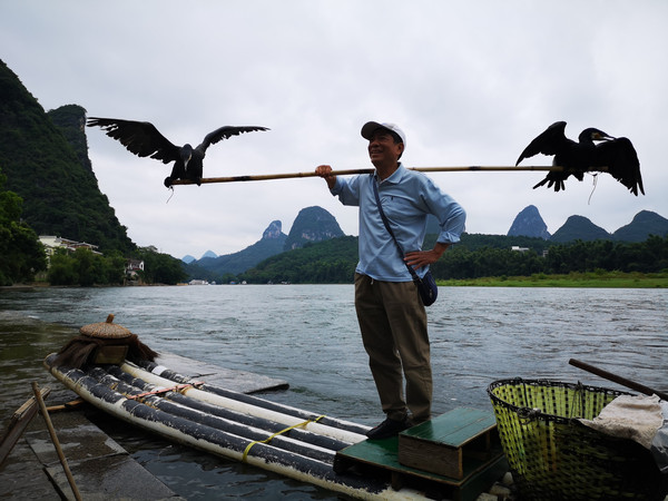 以前来过阳朔但只是记得码头那片地方,没有深入玩过。叶生还记得有个西街,反正阳朔不大,转进去领略其商业气息。因为是国庆长假期间,人满为患,但也还能接受,还在饱和状态之内,街道上商店里不拥挤,我们买了这里的特产辣酱系列,挑好四种先放着,回来再取。我们还是想去看看漓江风情,就转到江边。江边风景很好,有瀑布奇石,有别致的山野茶餐厅,有江水拍岸的石堤,堤上有专门带着鱼鹰的老人为游客提供拍照的,一位老人因没有微信收款,只好错过很过收入,后面的老人却可以微信收钱,但是价格贵了两元,五元一人生意红火,我们很想帮那个没微信的老人,但是身上除了百元大钞还真的没一张零钱,哪怕20元我都愿意,看那老人真的好无奈。在这里我们俩担着举着那鱼鹰拍了个六够,快乐离开。12点40分,来到一家有名堂的饭店,很多名人包括李总理来过的饭店。主要是火锅鱼,太大份,我们就点一个简单的吃完走人。到商店去取回我们的辣酱,因为急着走,那店员拿出一包给我,我只看到地址是我留下的地址写的广东就拿走,谁不知后来才发现他们给错了,不是我们选的牛肉酱,而是腐乳和辣萝卜干,只有一瓶是我们选的。无奈了,也许是商家有意更换了便宜的东西给我们。出城不远的路边看到月亮山,还真不错停车拍照继续赶路。3点半钟来到平乐服务区加油290元,继续赶路。原计划到广东梧州休息。但路程有些远,我们想在路上找一个小县城住下却都不如意。将近6点钟看到路边有“黄姚古镇”的风景告示牌,且有出高速的指示,将到岔路时发现就在收费处不远就有酒店,哈,马上决定下高速休息。一出高速就是一条小街满是酒店茶楼。转进一家院落,但是价格不菲,店家说这是节假日。算了,这种地方也就靠着节假日赚钱,平时80元就可以入住的,我们却付了228元,无所谓,早点休息为重。住下来吃过晚饭听说景区晚上有戏剧表演,结果跑到2公里以外的景区大门连人影都没有,说是还要走到别处,算了,黑灯瞎火的没人带领谁敢去呀。8点钟回房间休息。今日几段行程地图标识192公里,实际200多公里吧。