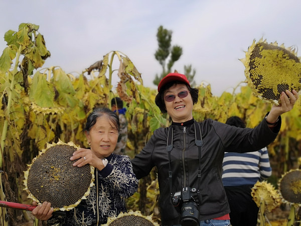 五原县有我的根,加上父母亲在这里有建树,创立的育仁小学有专门的纪念室展馆,每年都要回来拜见母亲的汉白玉石雕像。这次专门带回来一些父母用过的物品,父亲的医学书籍与诊疗器械,母亲的一本老式拼音字典,这可是个宝贝,市面上已经找不到了。交接完毕老师们带我去逛五原的美景葵园。葵园已经是一片萧条,美丽的葵花已经成熟弯腰,各种品种只剩零星的花朵,但是我更喜欢的是可以收集那些美丽的种子带回广东。晚饭与学校老师们共进。