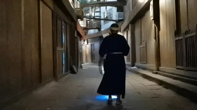 更有趣的是,小镇至今仍保留着“打更”的习俗。周洪烈是镇上唯一的更夫,每晚10点准备打二更,十年间从未中断。