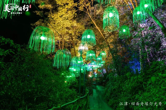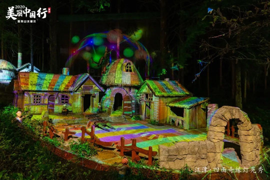 四面山用光影编织出了一个浪漫又酷炫的科技乐园。在这里你可以用眼睛看,用耳朵听,身临其境走进这五彩斑斓的奇幻世界里。