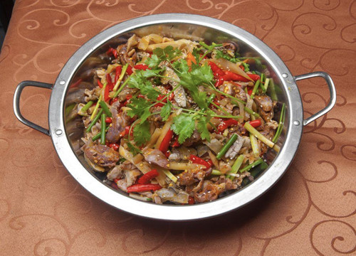 黔江鸡杂运用土家的烹饪方法,“鸡杂”泛指鸡的内脏,即鸡心、鸡胗、鸡肠、和鸡肝等为原料。爆椒鸡杂是地道的江湖菜,鸡杂的腥味儿重,将于辣椒、泡椒和葱姜蒜同炒,热菜油烹红艳艳的泡椒、和红萝卜丝儿,只需要5分钟,一道热腾腾的鸡杂就好了。酸辣鲜美,所以因此在黔江传开来。