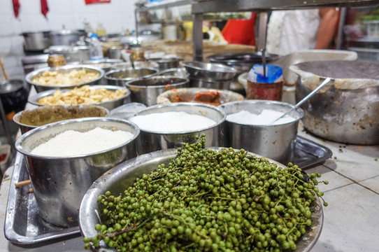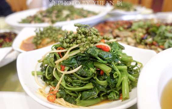 在江津各大餐馆的厨房,青花椒都是用大盆装的,因为它的用量很多,几乎每一道菜都要放花椒,连青菜都不例外(如上图),还没动筷,浓浓的椒香便扑鼻而来。