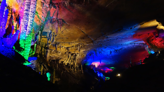 7月22日,早上九点到达民宿对面的铜仁环北客运站购买前往九龙洞的车票,1个小时后,客车出发了。10点45分到达铜仁九龙洞大门。乘坐景区电瓶车(注:九龙洞的电瓶车是按时间发车,20分钟一辆)前往九龙洞,10分钟后到达九龙洞山脚山,经过20分钟的阶梯和山路来到九龙洞洞口,九龙洞是在半山腰上,进九龙洞也是按时间进入,30分钟一拨,有解讲员,九龙洞洞长约2284米,总面积约8万平方米,洞内有7个大厅,现开放4个大厅和1个天庭。单是石柱、石笋就有数百根之多,另