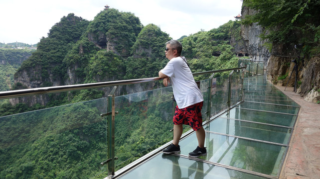 从登上天桥到现在已过去1个小时了。继续上山来到万山栈道(玻璃栈道),栈道全长1213米(其中玻璃栈道65米),