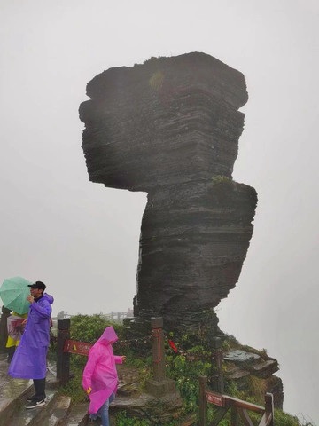 从不同的角度看,蘑菇石又像竖起的大拇指,似在称赞伟岸的山体,据说清朝大书法家严寅亮书写“黔山第一”的灵感就来自于此。