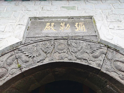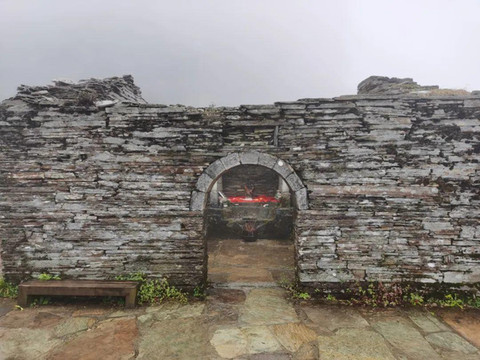 释迦殿和弥勒殿也是两座简陋的石屋,殿门紧锁,佛像不可见,雾中景色也不可见,但还有不少游客不辞艰辛攀爬至此,有的可能是抱着朝拜的信仰,更多的可能如我一样,怀着“来都来了”的不甘。