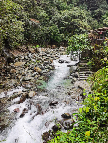 海拔越低,雾气越淡,及至山脚,溪水淙淙,花木掩映,梵净山才显出清秀怡人的一面。