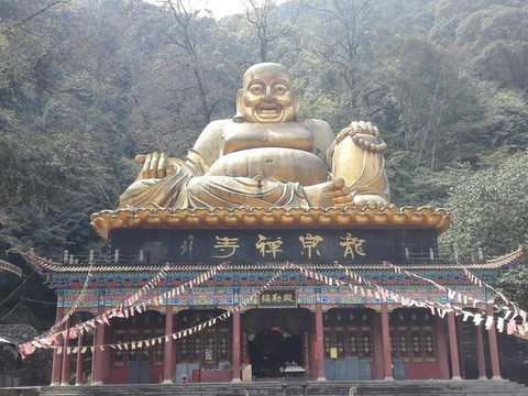 (乘车上山途中经过龙泉禅寺,寺顶的弥勒佛引人注目)