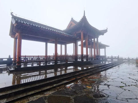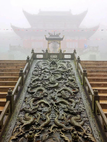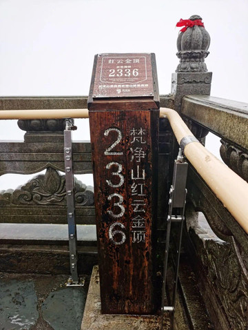 之所以叫“红云金顶”,是因为日出时分,红云瑞气常绕四周,禅雾佛光引人入胜,但我登顶的那天,没有佛光禅雾,只有十几米外的面面相觑和茫茫白雾。