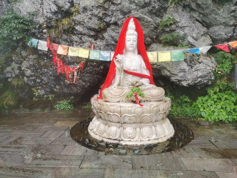承恩寺位于金顶之下普渡广场一侧,下临1000多米的深谷,晴好时百里风云尽收眼底,也是一处不错的观景点。