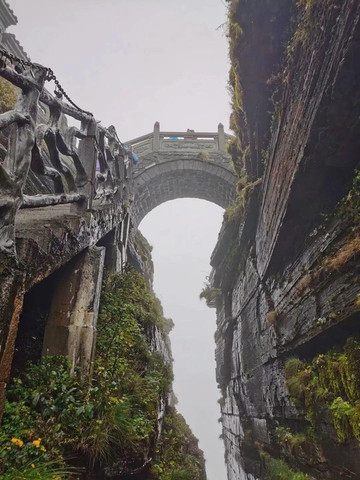 耗尽耐心和体力,终于看到了连接两座山峰的石桥,峰顶马上就到了。