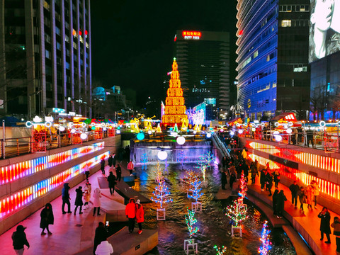 清溪川是韩国首尔市中心的一条河流,全长10.84公里,总流域面积59.83平方公里,清溪川在朝鲜王朝时代名为“开川”。日本占领朝鲜后开始被冠之以“清溪川”这一新的名称 。在1394年首尔还没有被指定为首都之前,清溪川尚属自然河川。四周环山的地理特点,使水流自然而然汇聚于首尔这座地势较为低平的都城中心,因此在朝鲜王朝还未对都城水路进行修整之前,已有自然河川流淌其中。至1950至1960年代,因经济增长及城市发展的需要,清溪川曾经被覆盖为暗渠,水质因污水的排放而恶臭不堪,2003年开始,经清溪川复原工程,已被重建为一个结合了景观和城市生态的首尔市中心的休憩地点。