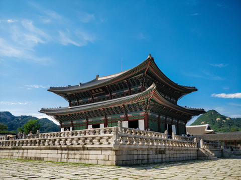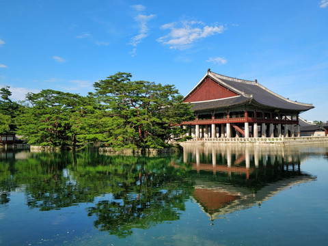 景福宫是首尔规模最大、最古老的宫殿之一,是韩国封建社会后期的政治中心。计有200栋以上的宫阁,建筑酷似中国的宫苑。正殿为勤政殿,是景福宫的中心建筑,李朝的各代国王都曾在此处理国事。此外还有思政殿、干清殿、康宁殿、交泰殿等。还有一个雅致的10层的敬天夺石塔,为韩国国宝之一。