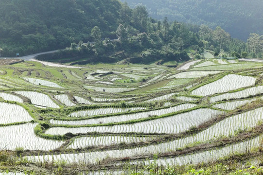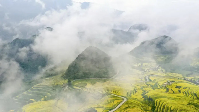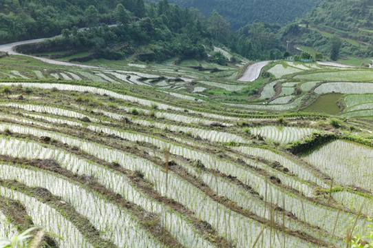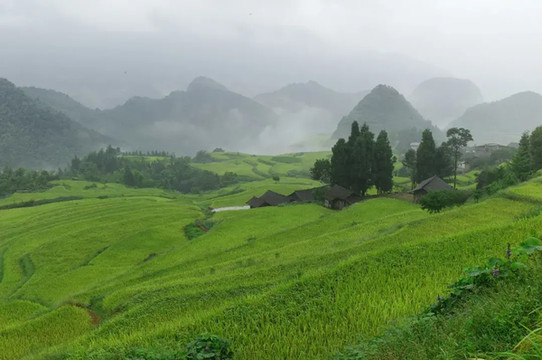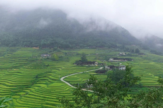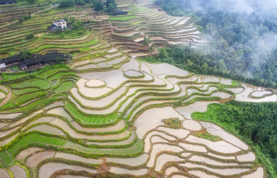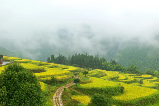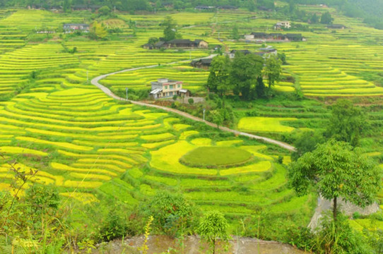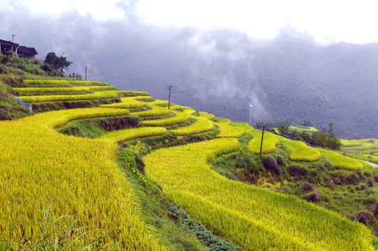 置身在梯田中间仿佛处在浓墨重彩的图画中。