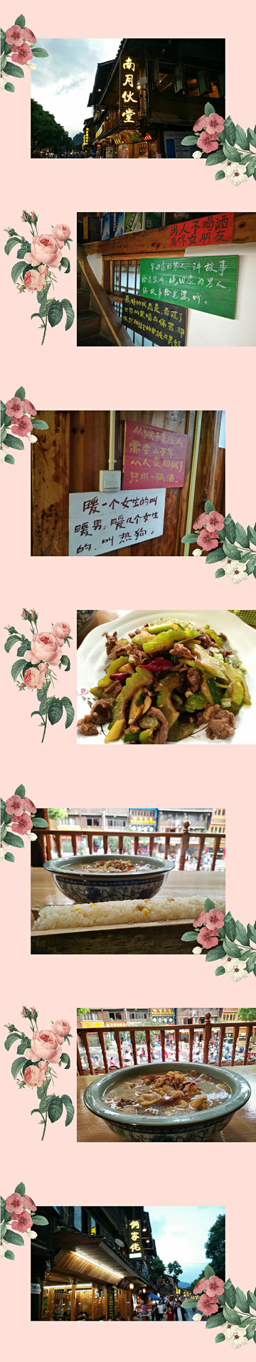 【说到吃的,南月伙堂和侗乡佬,相邻的两家店,你会发现菜单风格都很相近,因为是一家的,味道还可以,找不到比较想吃的,可以尝试下这里。竹筒饭挺好吃。】