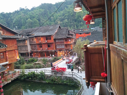 抵达景区后联系了客栈老板过来接我们,确实自己不太好找,这次住的地方换了一个临近溪边,远离主街道闹市的:黎平侗乡如意客栈。受山脚位置的影响,局限了视野但也能从窗户觅得一角平静。