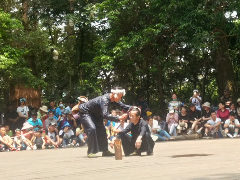 男性成年后,举行成人礼,剃掉头部四周的头发,留中部的发髻。表演的地方在山上,座位有限,盘腿而坐的我们跟地板亲密接触,也近距离的欣赏了现场游客的婚娶“入赘”,感受了他们表演踩踏的力度,真的很用力。表演有交流有互动,感受了他们的热情和对我们外来人的尊重和诚意,是有融入进去的。不枉此行。